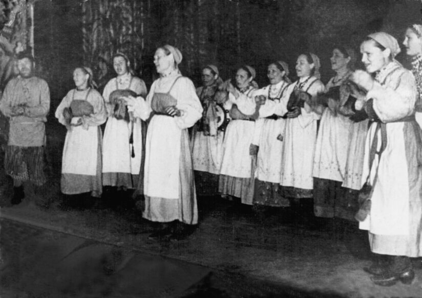 Фото. Сипавский хор на сцене оперного театра в г. Свердловске. 1943 год