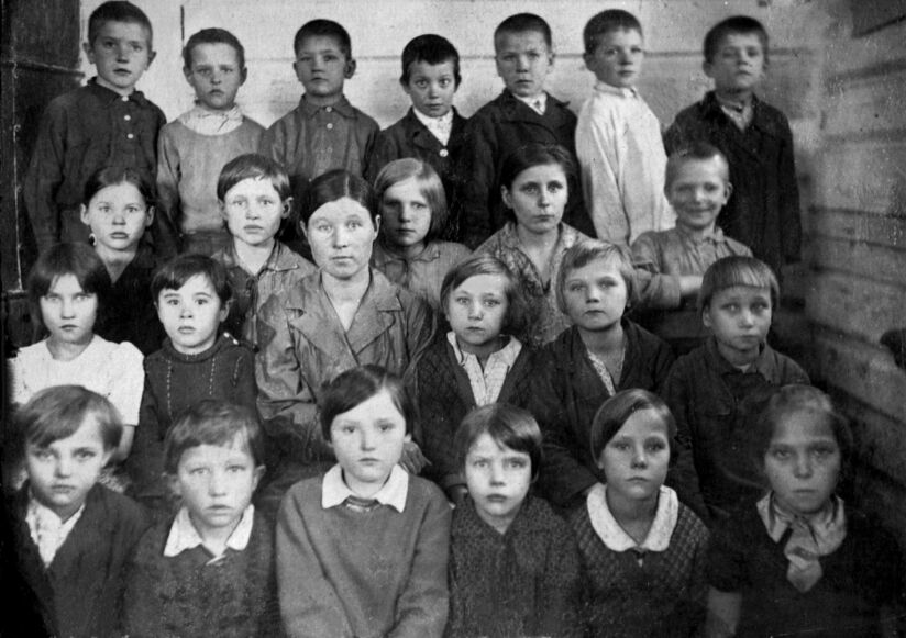 В центре учительница Елизавета Ефремовна Чемезова (погибла на фронте).