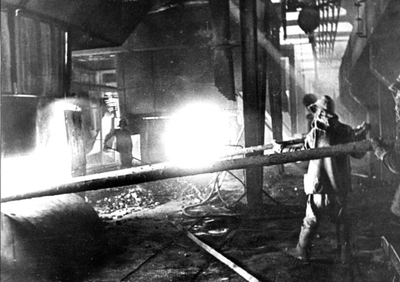 Фото. Выливка кремния из печи № 1. Декабрь 1941 года