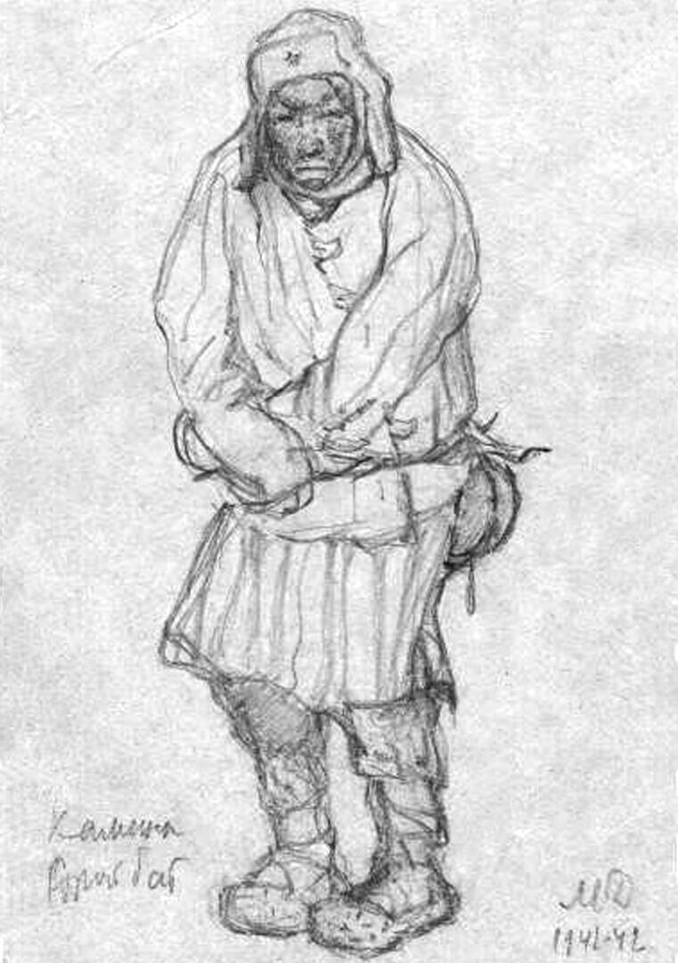 Фото. Рис. М. В. Дистергефта. Обмороженный узбек. 1941-42 гг.