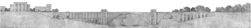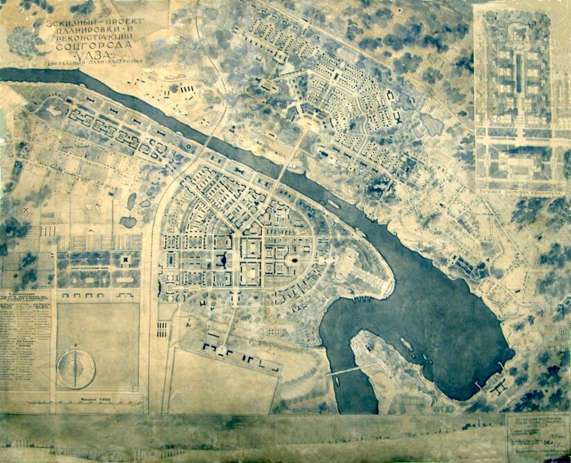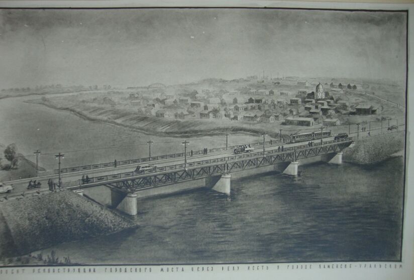 Железнодорожный арочный мост В.А. Росновского уникальная достопримечательность нашего города, интереснейший объект для показа туристам, путешествующим на корабликах по Исети и пешком по скалистым и лесистым берегам. Мы видим мост таким, каким его построили. А как выглядел проект моста, не всегда задумываемся. А ведь есть очень необычный чертеж моста, запечатленный на «Эскизном проекте планировки и реконструкции соцгорода УАЗа» 1943 г. Автор – старший архитектор Е. Столяров. На эскизе в левом нижнем углу находится чертеж моста через Исеть, напоминающий проект Росновского. Но когда составлялся эскизный проект, мост Росновского уже стоял, и его внешний вид никак не соответствовал тому, что изобразил Столяров! Вероятно, проект моста Столярова не был воплощен в жизнь, а эскизный проект железнодорожного арочного моста В.А. Росновского существует, но опубликовывать его запрещено.