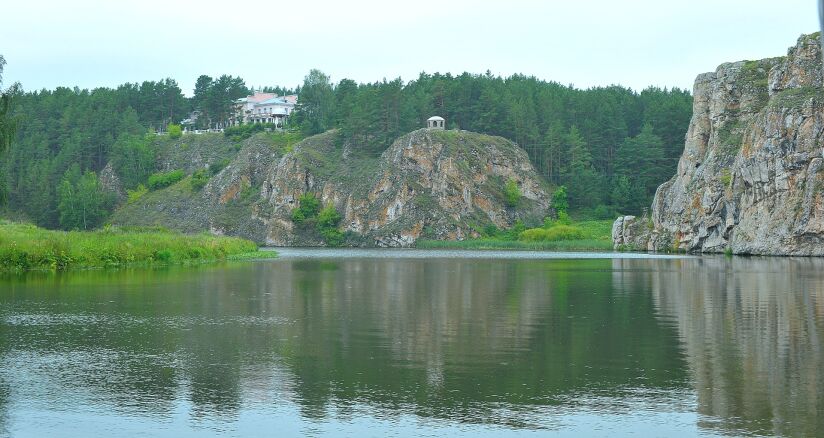 Ниже по течению на левом берегу Исети на высокой скале в необычайно живописном месте когда-то, еще до революции стояли дачи состоятельных каменцев, к примеру, купца Воробьева, торговца Тронина, служащего Воротникова и других. В советское время здесь был построен первый, прекрасный по своей архитектуре, Дом отдыха для металлургов. 2 августа 1949 года Горисполком разрешил заводу п/я 4 (КУМЗу) построить Дом отдыха на участке площадью 13,5 га. 5 ноября 1950 г. красивое здание в стиле сталинского ампира широко распахнуло двери для первых отдыхающих. Многие годы Дом отдыха «Металлург» принимал посетителей, затем сменил свой профиль и стал санаторием «Сосновый бор». Сейчас это частный пансионат.