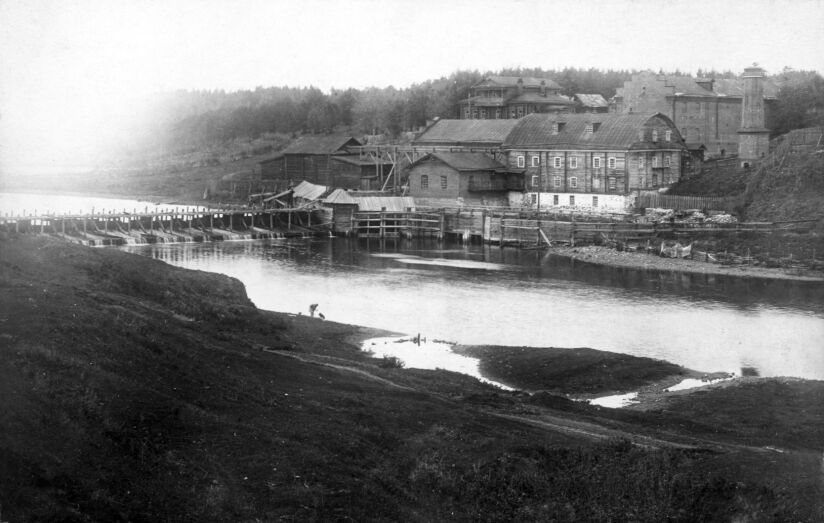 На левом берегу Исети, где сейчас стоит водозаборная станция трубного завода до революции находилась дача земского врача В.А.Скворцова с большим плодово-ягодным садом и огородом. Ближе к спуску стоял мыловаренный завод женского Преображенского монастыря. Корпус был сложен из камня, монашки здесь жили по всему лету, белили холсты и варили мыло, ухаживали за своим огородом. По правую сторону спуска находился мыловаренный и свечной завод Выходцева. Ближе к берегу Исети стояли старые мощные тополя, между которыми стояло деревянное здание, в нем был маслобойный завод. Лошадь, запряженная в колесо, вращала вал, от которого приводились в движение все необходимые механизмы. Владельцем маслобойки был Титов Петр Тимофеевич.