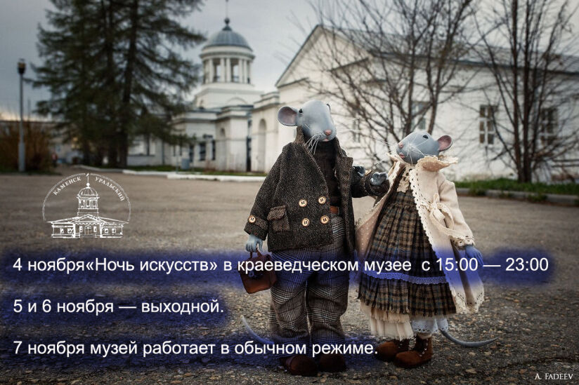 4 ноября, во время проведения «Ночи искусств», краеведческий музей работает с 15:00 — 23:00