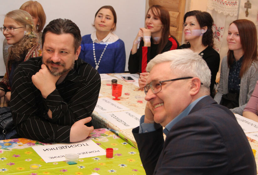 Нескучно провели время каменские журналисты. Впервые за все годы, представителей городских СМИ поздравляли с их профессиональным праздником в здании краеведческого музея. А поскольку у музея в арсенале огромное количество традиций: гадания, игры, караоке, роспись колокольчиков, бросание валенка, то всё это и пришлось изведать гостям на себе, о чём, правда, они ничуть не пожалели.