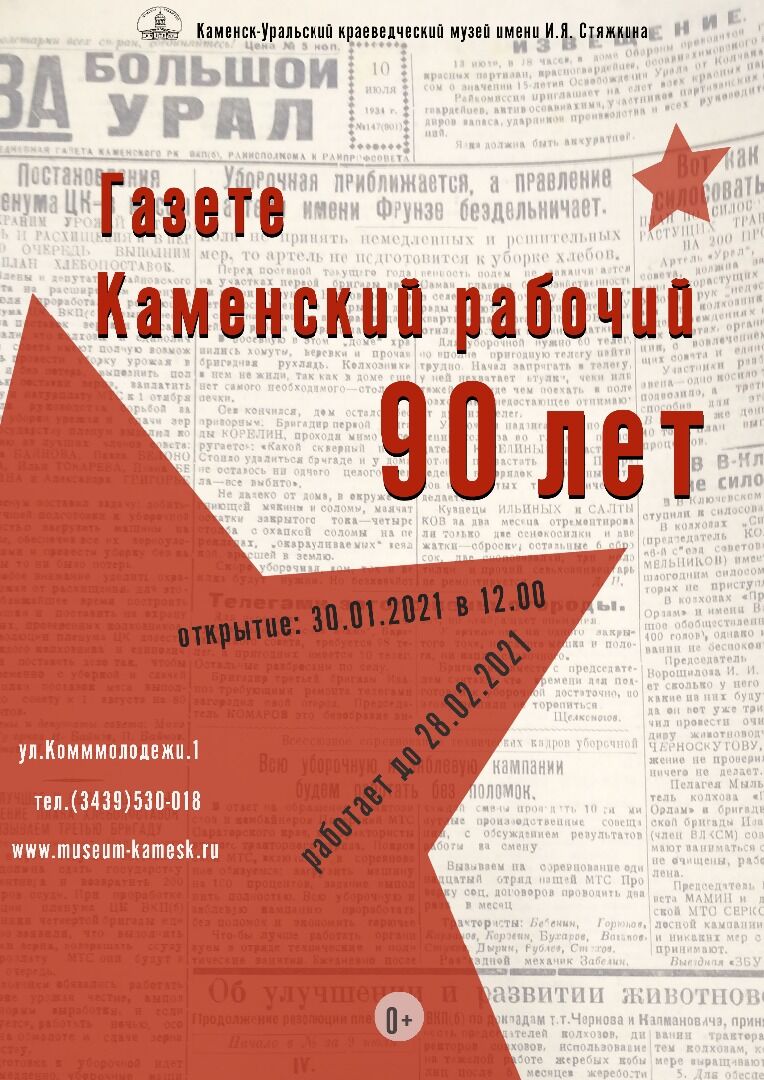30 января в Краеведческом музее откроется небольшая выставка, посвященная большой дате – 90- летию со дня рождения одной городской газеты, при рождении получившей одно имя, а потом другое. Редакционный коллектив дал на выставку самые дорогие сердцу экспонаты, связанные с историей газеты, да и в музее сохранилось немало интересных экспонатов, принадлежавших легендарным журналистам прошлых лет.