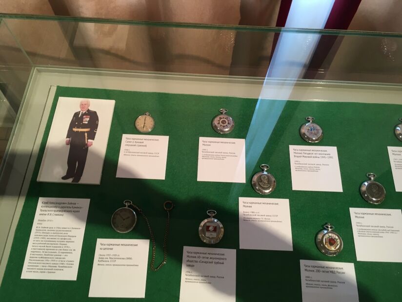 10 января 2021 исполнилось 150 лет Свердловскому областному краеведческому музею им. О.Е. Клера. Выставка «Урал в подарках», открывшаяся 10 декабря стала первым проектом к 150-летию Свердловского областного краеведческого музея. Экспонаты для выставки предоставили более 20 партнеров музея – организации и частные лица. Одним из партнеров является наш музей. На выставке представлена коллекция карманных часов, подаренная другом краеведческого музея, Юрием Александровичем Байновым. Коллекция насчитывает 13 предметов.