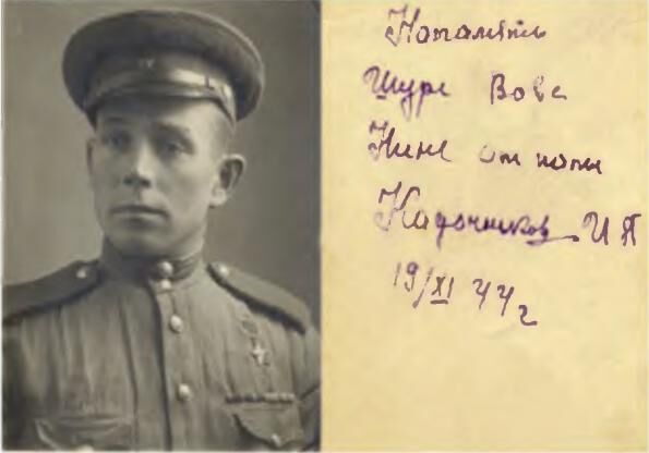 Осенью 1945 года Иван Петрович вернулся домой. Самой ценной вещью, которую отец привез с фронта, в семье Кадочниковых считали фотоальбом. Его вручили Герою от политотдела гвардейской дивизии. На обложке надпись - «Смерть немецким оккупантам»!