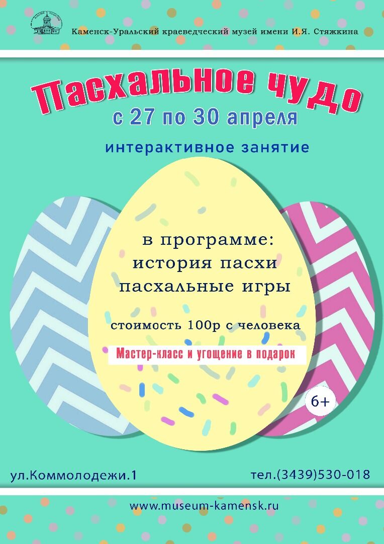 На следующей неделе будет отмечаться один из самых главных христианских праздников - Пасха. Краеведческий музей приглашает всех желающих провести праздничные дни весело и интересно.