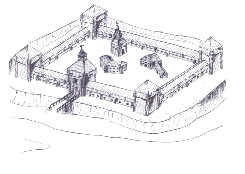 Пришлось строить новый, который размерами поменьше был, но в нем находился «выход-тайник», чтобы в случае осады можно было незаметно выйти из острога. Вокруг него был ров с препятствием – надолобами и рогатками. Внутри острога стояла вновь отстроенная церковь во имя Сретенья Господня, а также судная изба и пороховой погреб. На острожной башне висели три медных колокола. В этот раз эта постройка обошлась в 430 рублей.