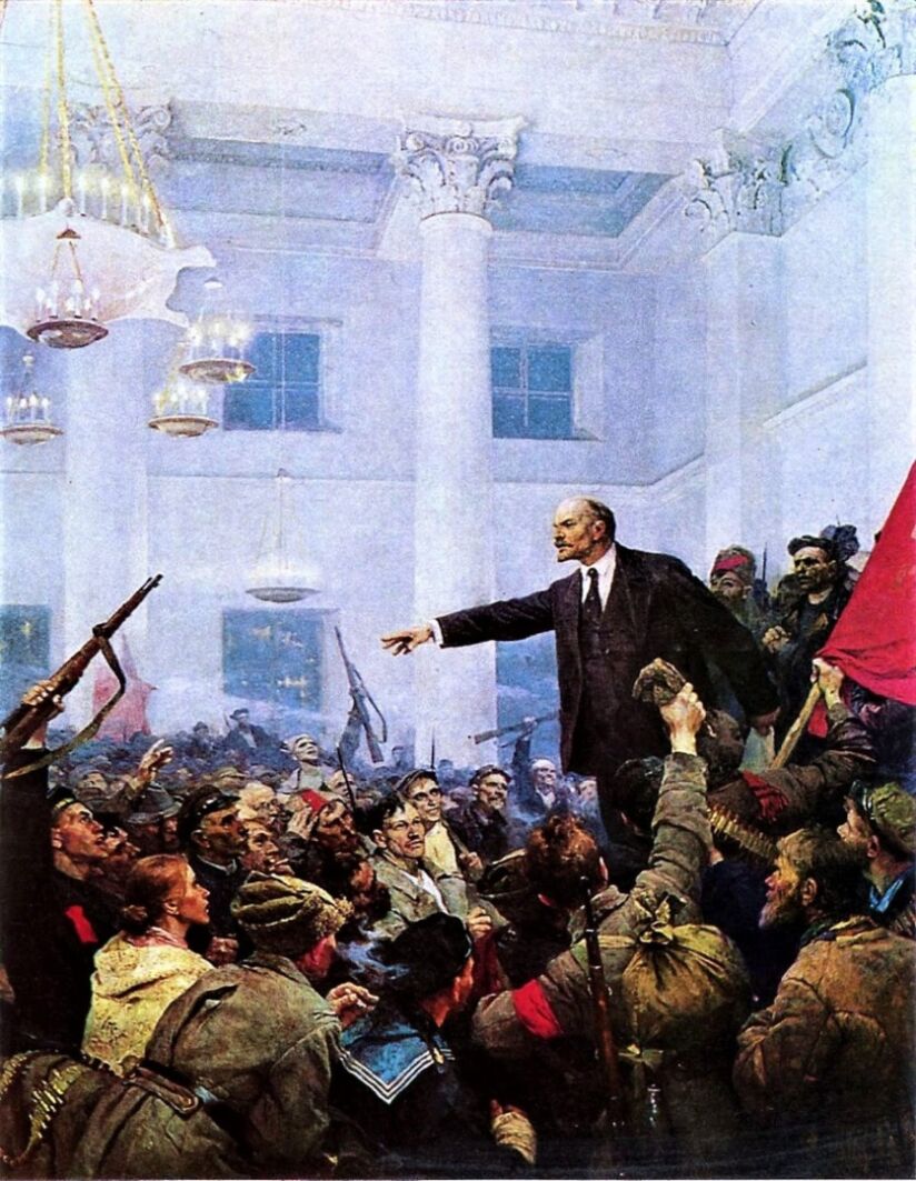 В нашем краеведческом музее есть копия известной картины Владимира Серова «Ленин провозглашает советскую власть на II съезде Советов» (многие могли видеть её в экспозиции «5 Революционных лет в Каменске»). Но, оказывается это не первый вариант известного полотна. В первом, художник изобразил самого Сталина рядом с трибуной. Вероятно, именно за это и получил в 1948 году Сталинскую премию.