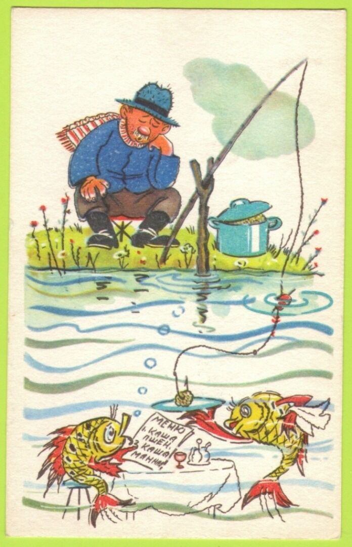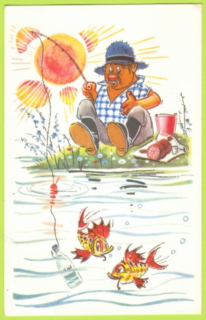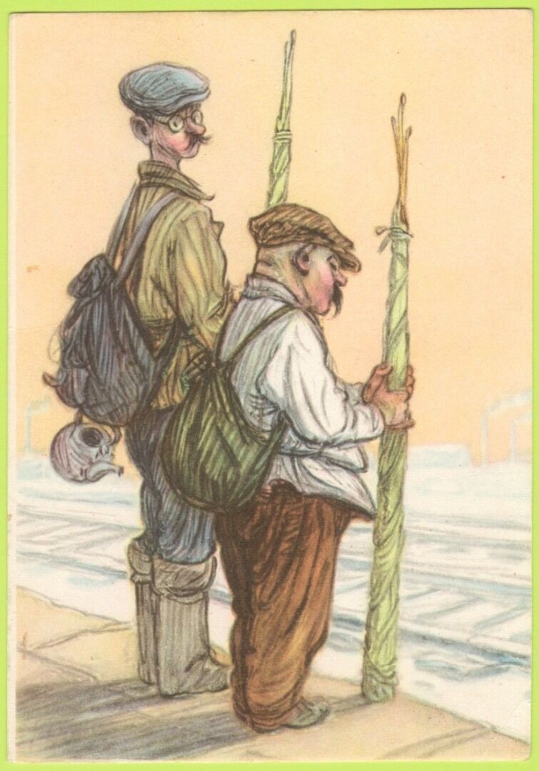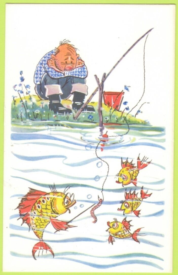 В коллекции музея представлена открытка 1956 года выпуска с работой выдающегося художника-сатирика И.М. Семёнова – «На рыбалку».