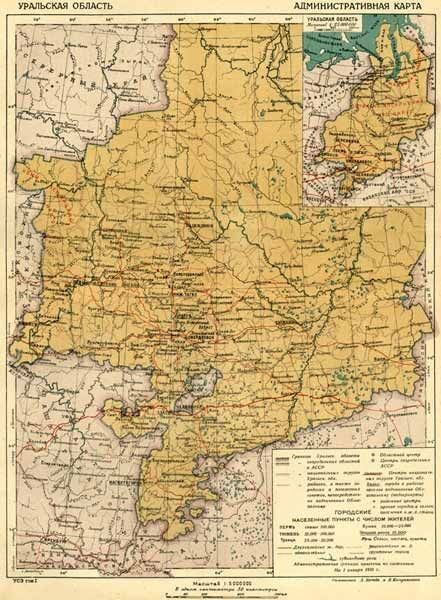 Общая территория Уральской области составляла 1757,3 тыс. кв. км. (8% всей площади РСФСР), около двух третей этого обширного пространства приходилось на малозаселенный север. В области имелось 23903 населенных пункта: 47 городов, 158 фабрично-заводских и других поселков городского типа, 852 населенных пункта в полосе отчуждения железной дороги и 22866 населенных пункта сельского типа. Наиболее крупными являлись города Екатеринбург (102 тыс. населения), Пермь (71 тыс.), Челябинск (55 тыс.), Тюмень (43 тыс.), Нижний Тагил (38 тыс.), Златоуст (34 тыс.), завод Мотовилиха (28 тыс.), Троицк (25 тыс.), Курган (22 тыс.), Сарапул (20 тыс.).
