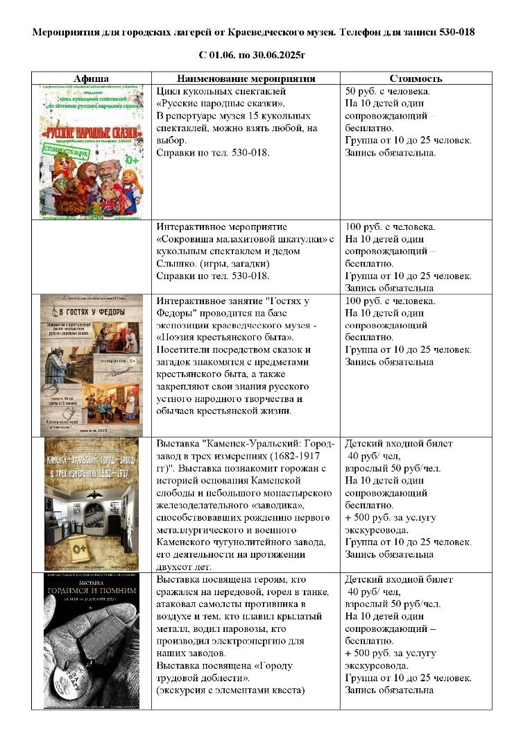 Программа мероприятий для городских лагерей 2025г.
